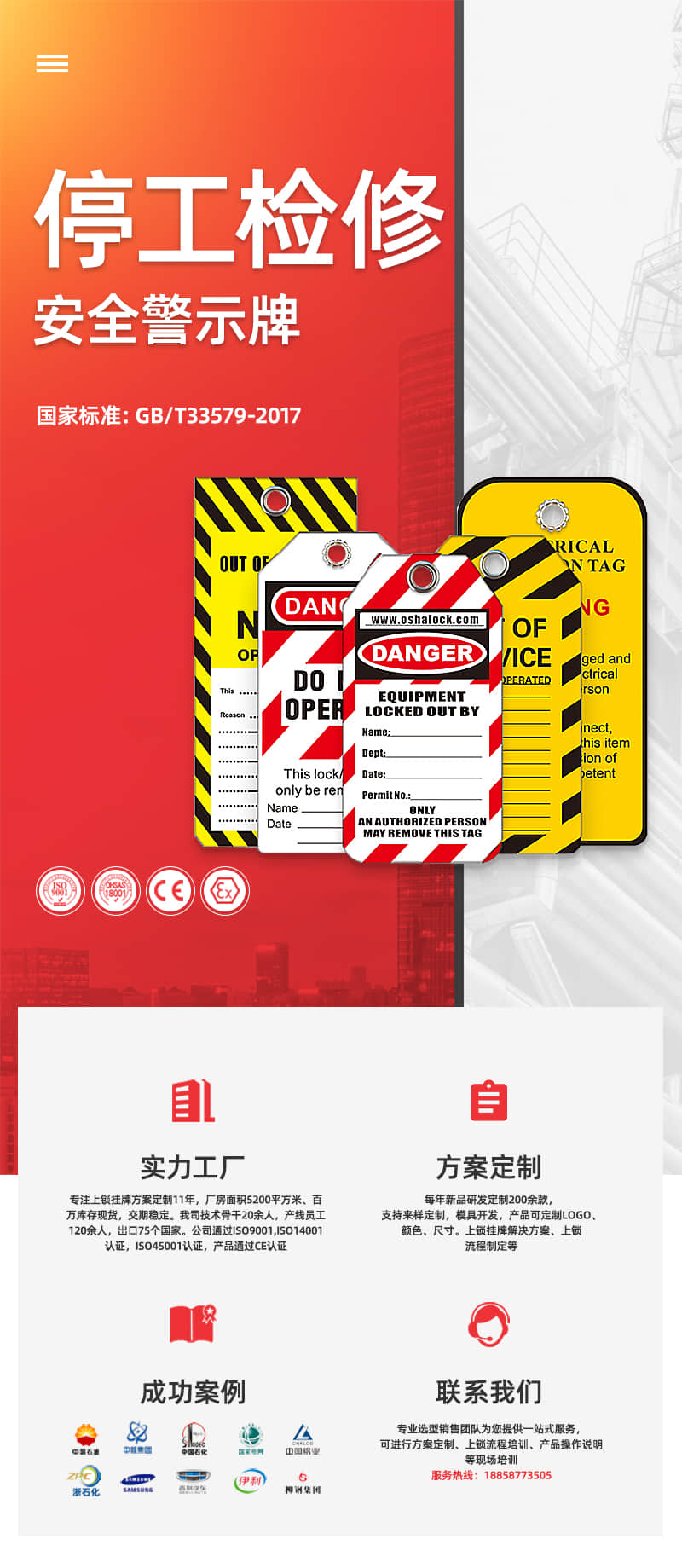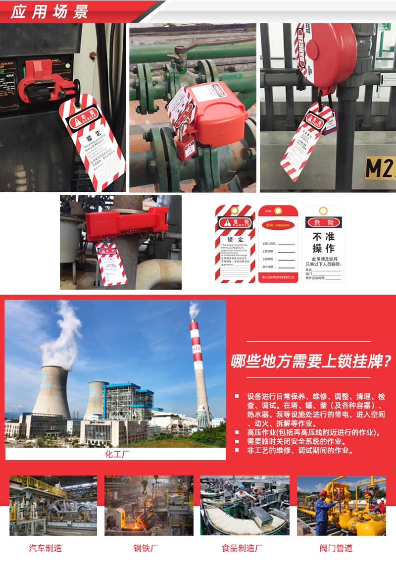 专业生产安全挂锁,安全阀门锁,安全缆绳锁,气动气瓶锁,工业电气锁,安全警示挂牌记忆锁具工作站等,符合OSHA1910.147标准。涉及领域:石油天然气、 化工、电力、核能、物流运输、 机器制造等行业!