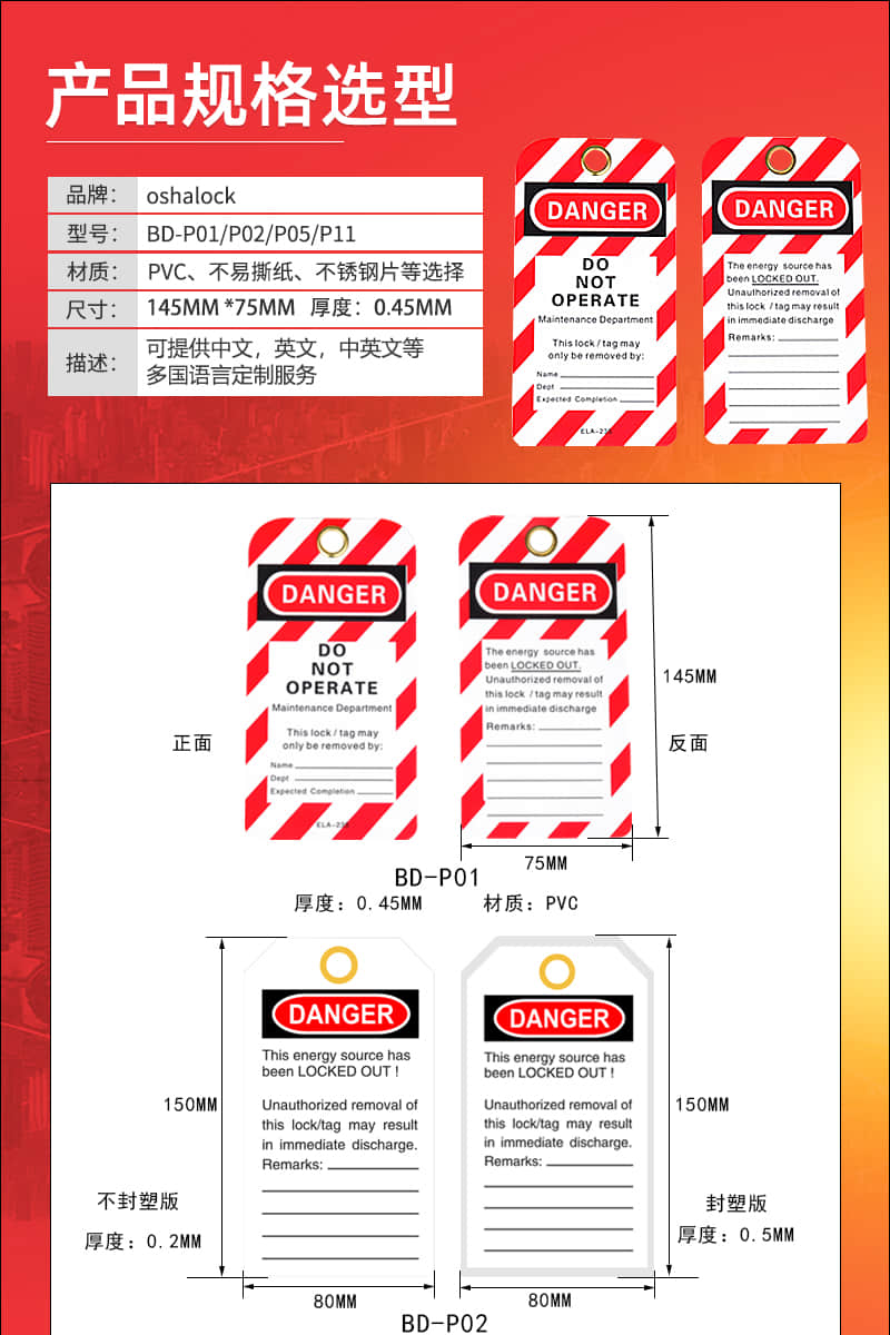 温州博士安全锁具--安全吊牌BD-P01: