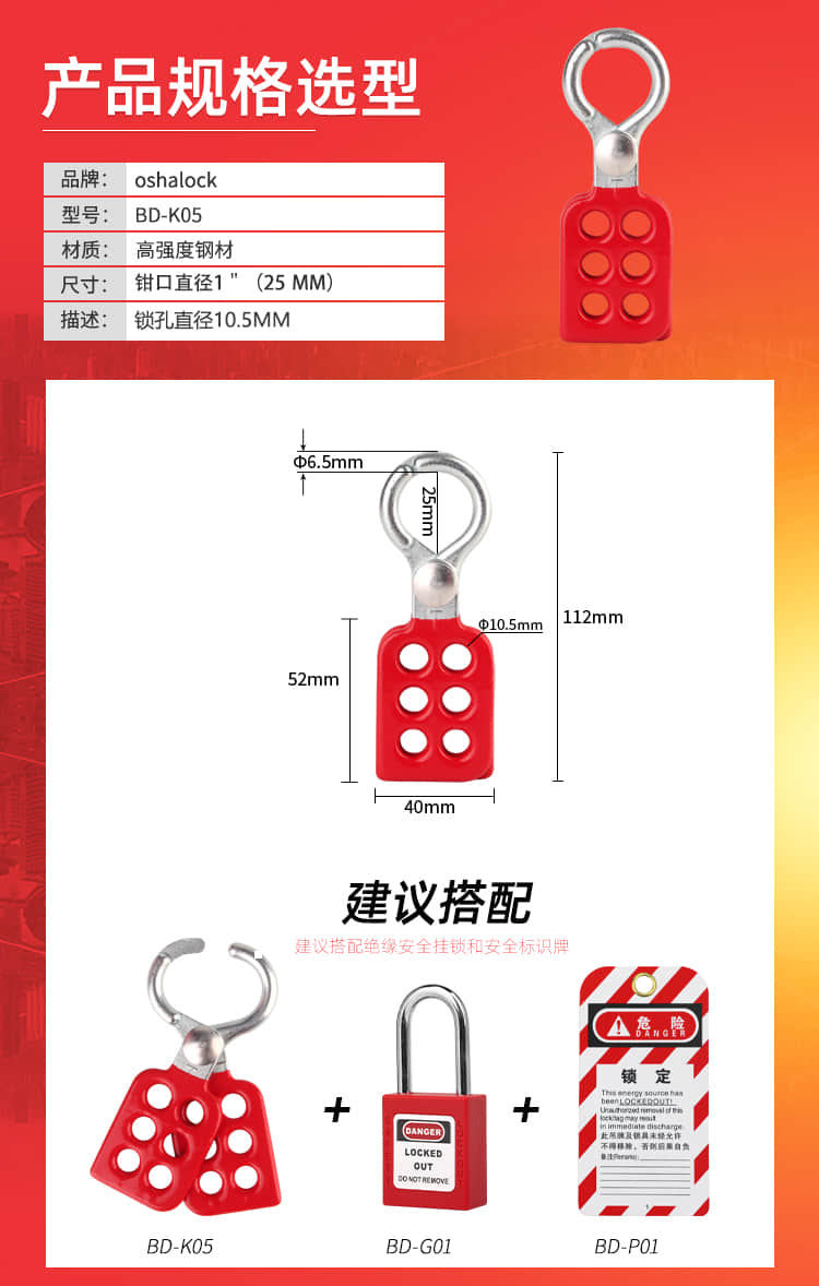 博士安全用品:经济型钢质搭扣锁BD-K05